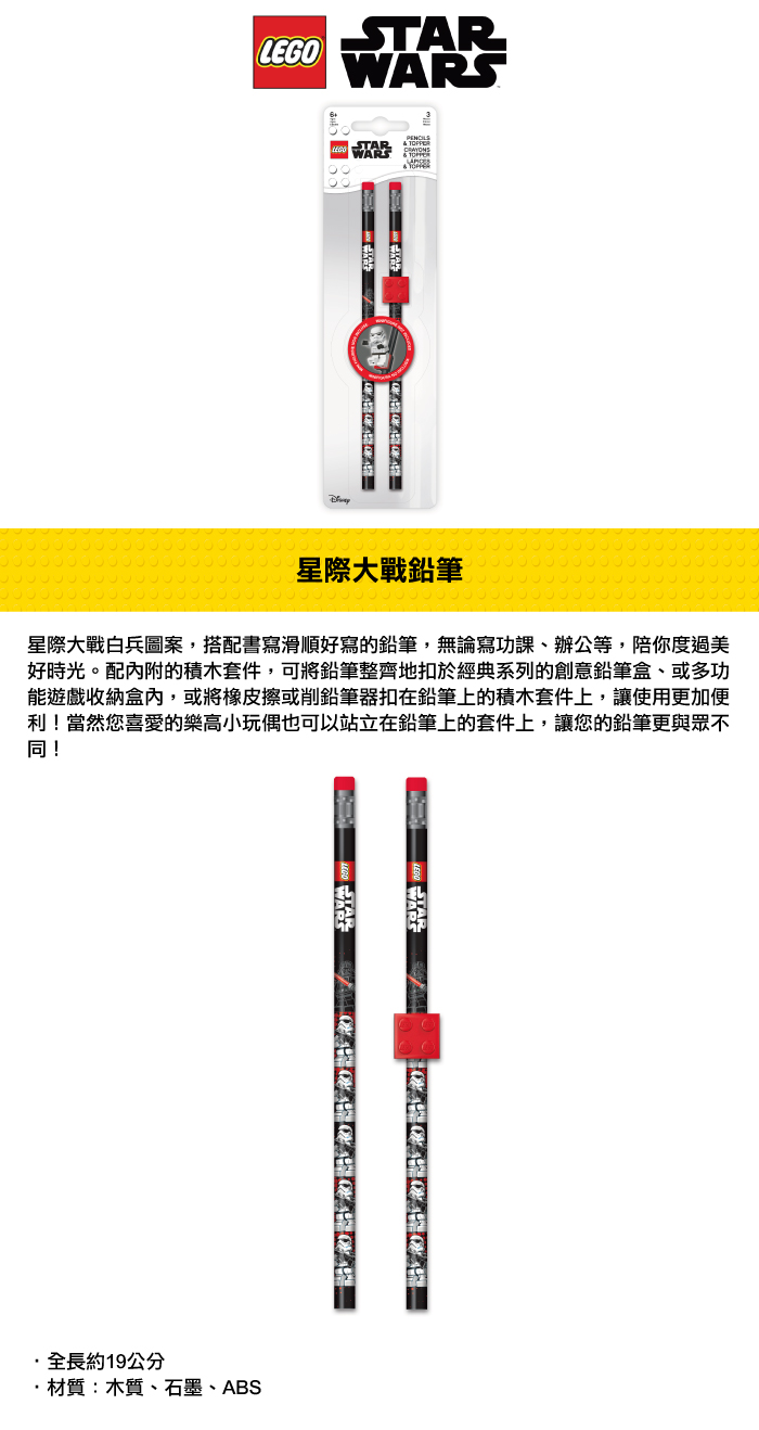 《STAR WARS 星際大戰》白兵(風暴兵)圖案,搭配書寫滑順好寫的鉛筆,無論寫功課、辦公等,陪你度過美好時光! 點這裡看更多 LEGO 樂高原廠授權商品及免費 MOC 說明書。 點這裡看更多 LEGO 樂高盒組開箱。